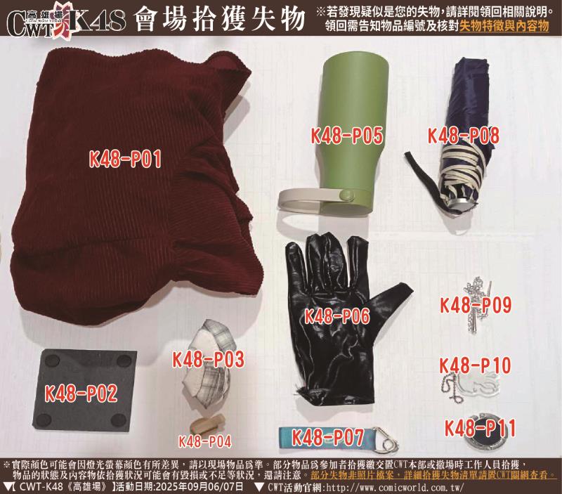 【領回方式】 若有同好在物品清單及照片中,發現疑似屬於您的失物,請依規定方式與CWT工作小組聯絡。