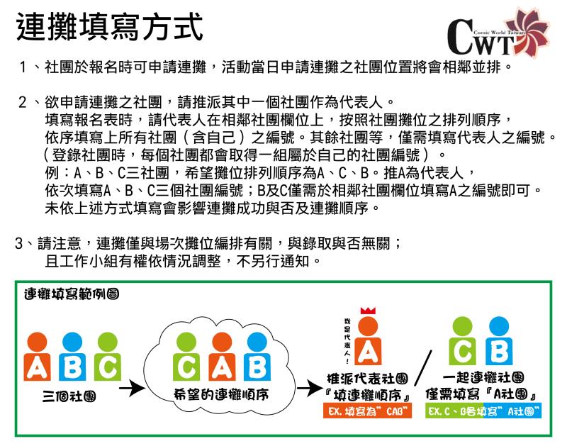 故2019年8月場次開始,請各社團依照公告連攤方式填寫連攤