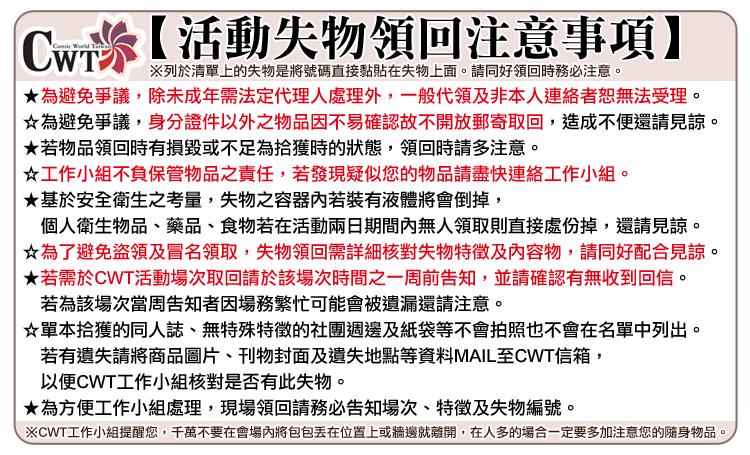 ※ 主辦單位保留對活動規則、時間及一切關於本活動內容、辦法、流程、方式等的變更、修改或取消之權利,若有變更將於CWT官網公告,恕不另行通知。