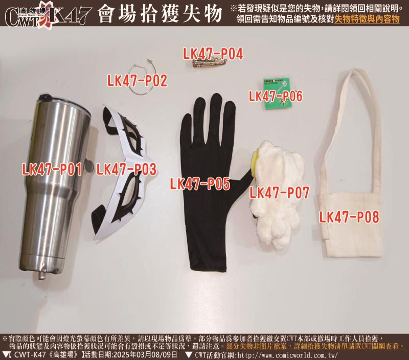 【失物僅保留一年】 若有同好在物品清單及照片中,發現疑似屬於您的失物,請在公告後一年內依規定方式與CWT工作小組聯絡。