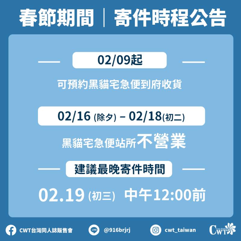 【CWT-72】 春節期間|寄件時程公告