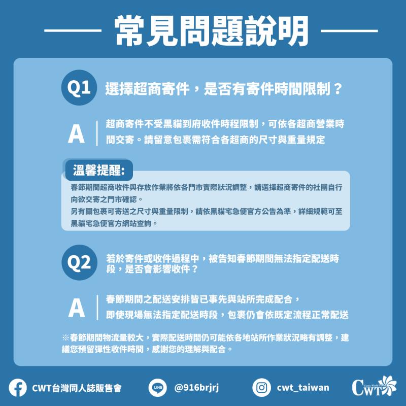 春節期間若於寄件或收件過程中,被告知無法指定配送時段,包裹仍將依既定流程正常配送。